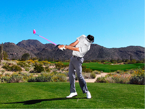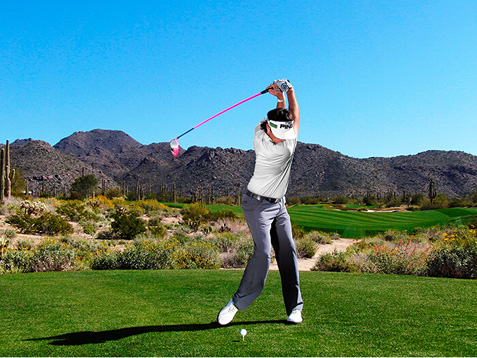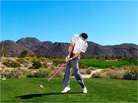图16 经典的“双手高、杆头低”收杆动作,正如巅峰时期的汤姆·韦斯科普夫