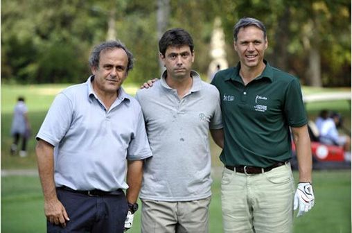 9.普拉蒂尼与范-巴斯滕及尤文图斯主席小拉涅利2011年在高尔夫慈善赛上合影。