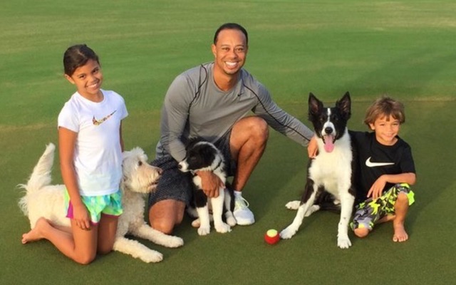 圣诞来临,泰格·伍兹买了一只新宠物狗给他的两个可爱孩子庆祝节日。接着,伍兹在家后院的额高尔夫球场上与孩子们还有宠物一起合影留念。从照片上看,伍兹的孩子依然是那么的可爱,而且,显然,孩子们由于收到了父亲的圣诞礼物都笑颜逐开。看来,老虎在做一名好父亲的道路上相当努力。