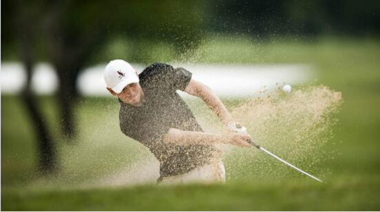 如果球掉进了球道沙坑,如果到果岭的距离差不多是7号铁,最好是先选择9号铁,将球放到球道安全的位置上。为什么不选择7铁攻果岭呢?技术若不过硬,很有可能就是球撞沙坑前沿,然后仍然留在沙坑里。这显然是不该有的失误,因此要选择足够大的球杆,将球安全地救出沙坑。