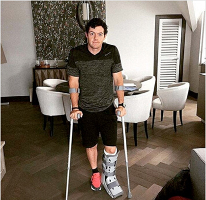 这或许是2015年最让高尔夫球迷无语,也最让足球迷尴尬的瞬间:在圣安德鲁斯英国公开赛之前一个星期,麦克罗伊发布了一条震惊世界的消息。他贴出了一张自己拄拐杖、穿保护靴的照片。他表示在与朋友一起踢足球的时候,他弄坏了左脚踝韧带。小麦缺席了英国公开赛卫冕之战,总共用了6个星期才康复转来。他及时赶回来,在呼啸峡参加了美国PGA锦标赛卫冕之战,最终获得并列第17名。麦克罗伊直到年底看上去才最终走出伤势的影响。他赢得了DP世界巡回锦标赛,连续第二度拿到迪拜竞赛总冠军。