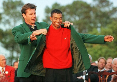 转职业后第一次参加美国大师赛,就赢得胜利,穿上绿夹克,这并不让人意外。而以12杆的优势(总成绩-18)获胜,则惊掉了不少人的下巴。