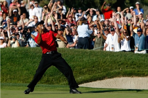 拖着一条几近无法行走的伤腿(左腿),伍兹在美国公开赛的18洞延长赛上,战胜了洛克·梅地亚特,第三次赢得美国公开赛的冠军。
