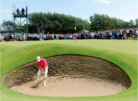 古老球场的‘路洞’是世界上最著名的球洞之一,球道速度比果岭速度要快。它的果岭 之大超乎你的想象,站在果岭上看球洞真的很难。
