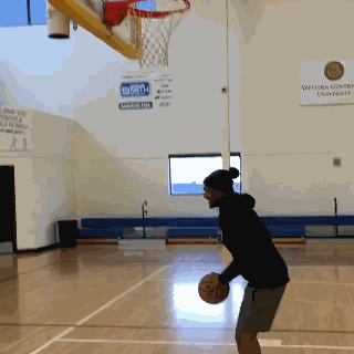 他为那则视频配上了以下的文字内容:“许多人问我是否我能灌篮?答案是:可以!并且不需要助跑。”