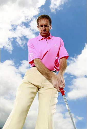 从根本上来讲,要想在压力状态下将小球推击入洞,就要保持思绪平稳,并全神贯注于推击点上。