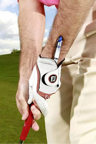 为增强左手的推击感觉并准确保持击球节奏,可以在左手手套徽标处放置一支钢笔来练习。推击过程中要注意节奏并使钢笔的位置不变,也不能在触球瞬间让钢笔扎到自己的手臂。