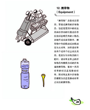 是指球员使用、穿着或携带的所有物品,但正在使用中的球及用来标示球的位置或标示应抛球区域范围的小物品,如硬币或球座等除外。
