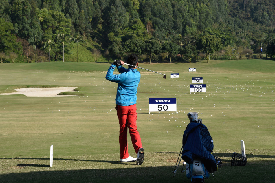 2016年沃尔沃中国公开赛的首站资格赛——广州南沙资格赛将于1月26至27日在南沙高尔夫球会举行。赛前,球员来到球场进行练习。
