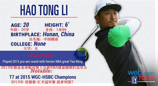 李昊桐在2015年汇丰冠军赛上获得并列第7新浪体育讯 北京时间1月28日消息。总奖金62.5万美元的威巡赛2016赛季揭幕战——巴拿马锦标赛(Panama Claro Championship)将于1月28日-31日在巴拿马高尔夫俱乐部开打。唯一拥有威巡赛全卡的中国选手李昊桐已确认参赛(窦泽成和张新军位列递补名单,18岁小将王首谦未报名)。而在开赛之前,威巡赛官网评选10大瞩目球员中,这位世界排名第180位的20岁小将更是高居榜首!中华台北球手潘政琮(Cheng-Tsung Pan)亦上榜,名列第8位。