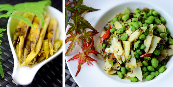 味道清新的手剥笋是会所餐厅的招牌菜