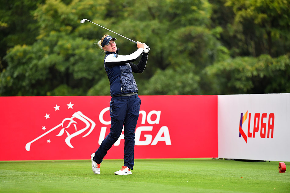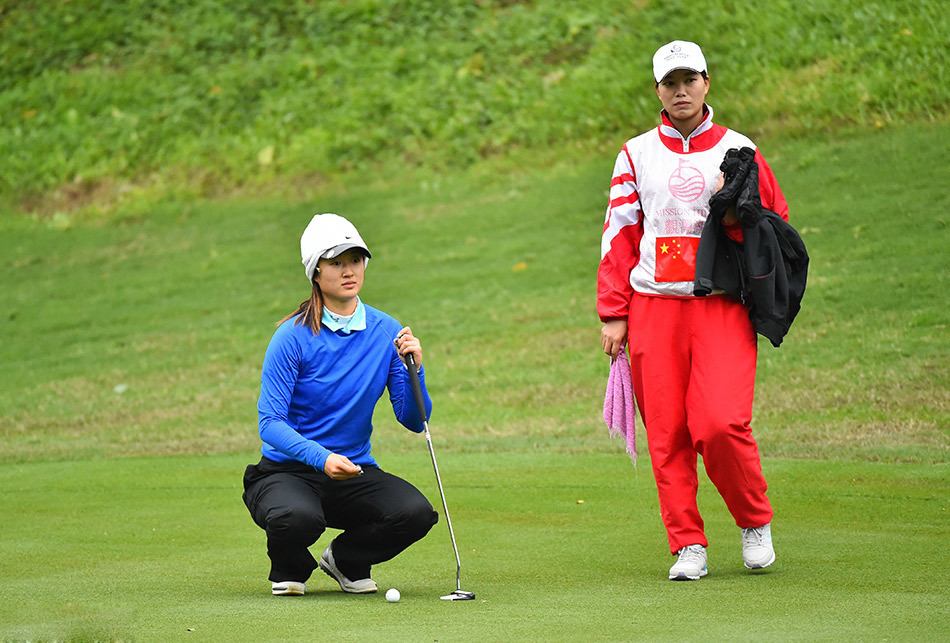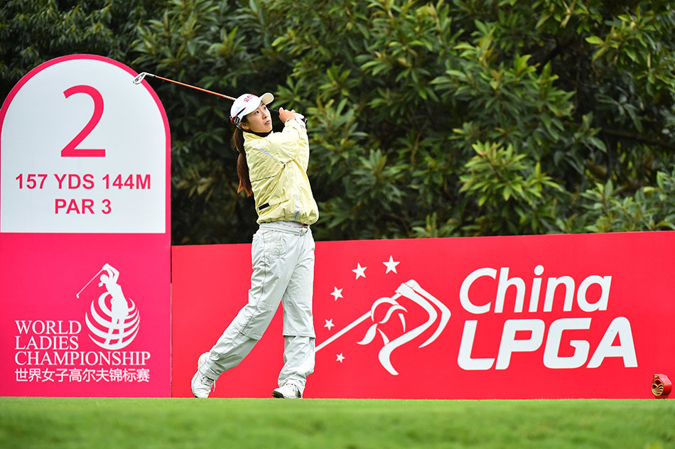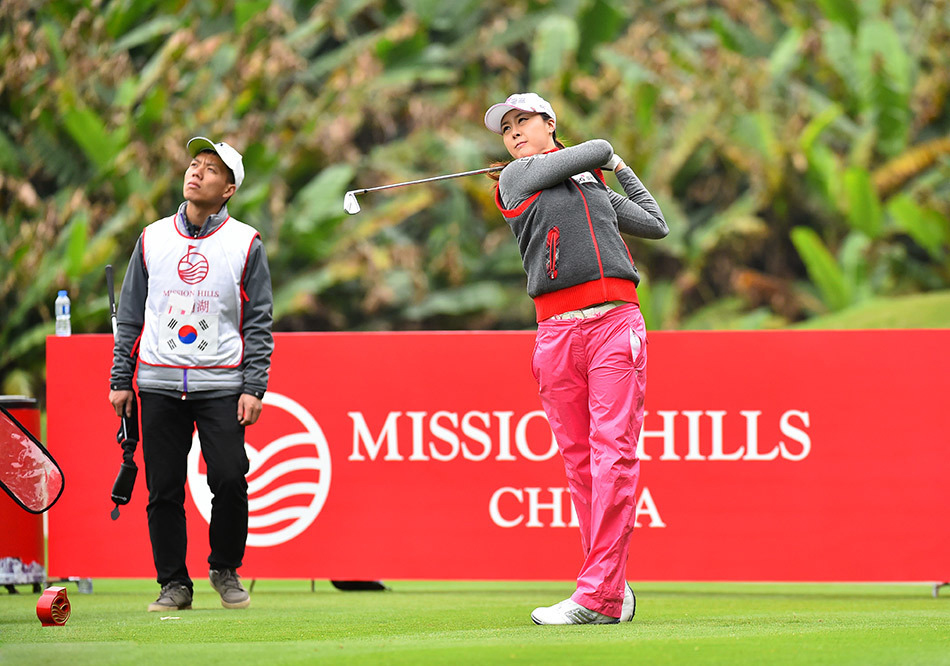 3月11日,2016年世界女子高尔夫锦标赛在东莞观澜湖奥拉沙宝球场展开了第二轮的争夺,由于首轮比赛暂停的原因,次轮比赛也未能完赛。韩国选手金宝景以低于标准杆5杆的成绩取得会馆领先。(摄影:王述)