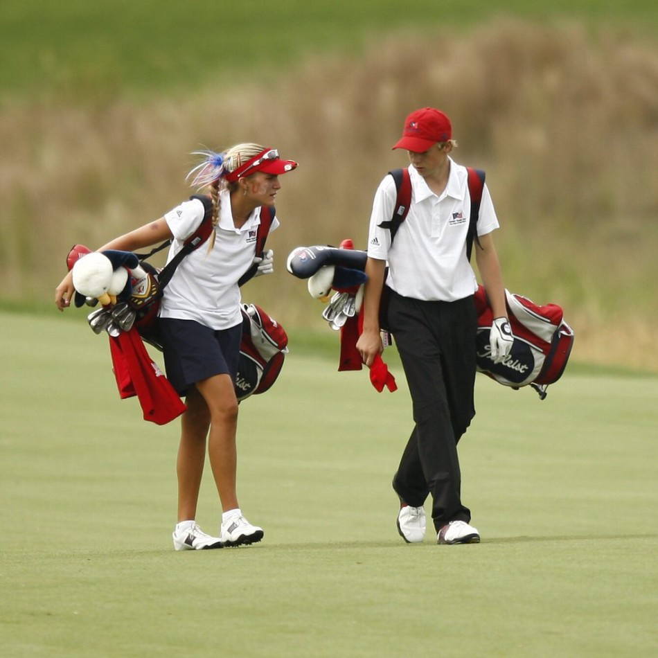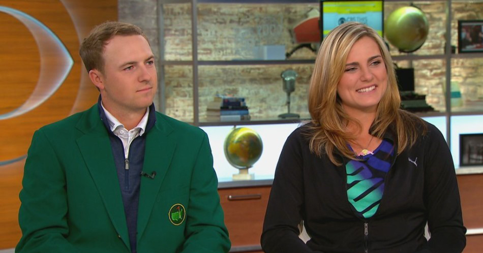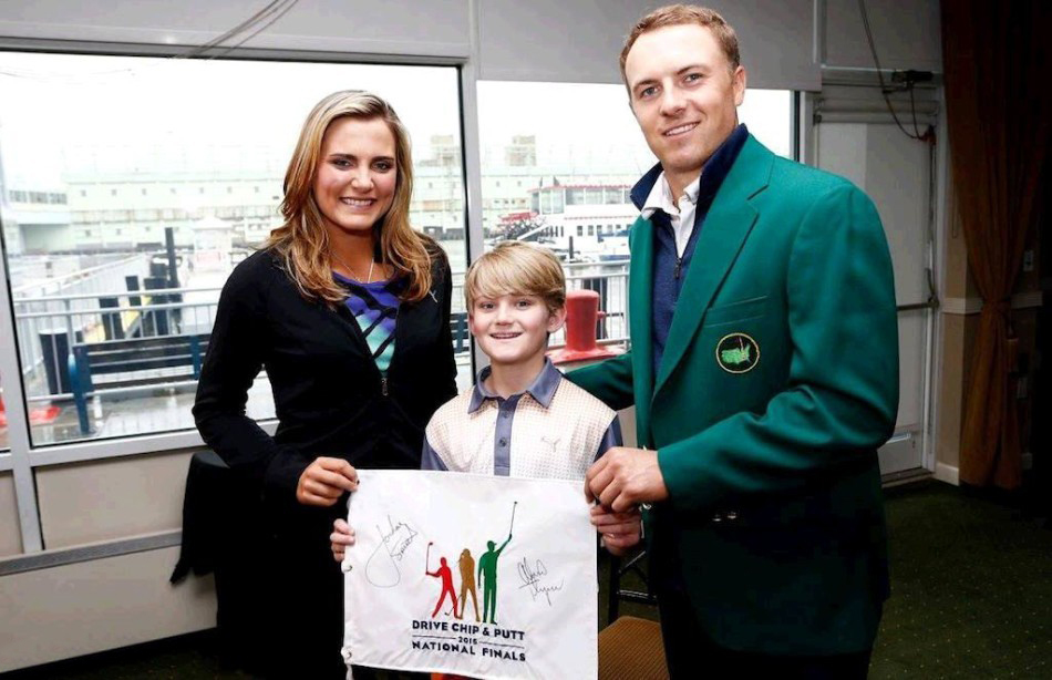 美国高尔夫一哥乔丹-斯皮思与一姐莱克西-汤普森出席了在美国纽约举行的青少年高尔夫推广活动。22岁的斯皮思与21岁的汤普森彼此并不陌生,两人曾经一起组成美国队搭档,出战2008年的青少年莱德杯。