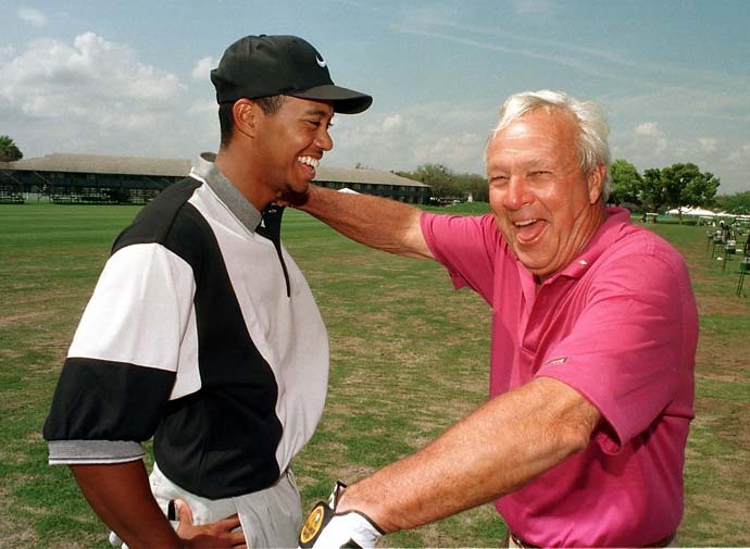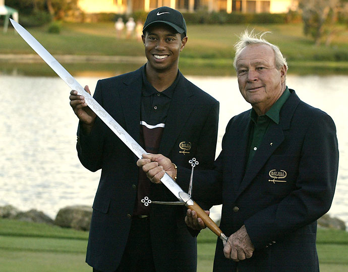 2002年为帕尔默邀请赛冠军伍兹颁奖