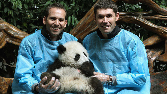 当高尔夫运动员离开赛场,面对小动物的时候,展现出了平时你所看不到的亲和有爱一面。