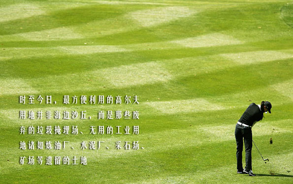 反观当代的球场——草种丰富、灌溉充沛、草皮切割完美、障碍设置巧妙——它们的鼻祖则显得过分凄凉。但有一点从古至今没有改变的是,许多现代的球场也是建在没有用处的边际土地上的。时至今日,最方便利用的高尔夫用地并非海边沙丘,而是那些废弃的垃圾掩埋场、无用的工业用地诸如炼油厂、水泥厂、采石场、矿场等遗留的土地。在过去的三十年间,世界上有好几百个球场建在这类土地上。从美国到英国,德国到法国,韩国到马来西亚,都有许多成功的变废为宝的球场案例。