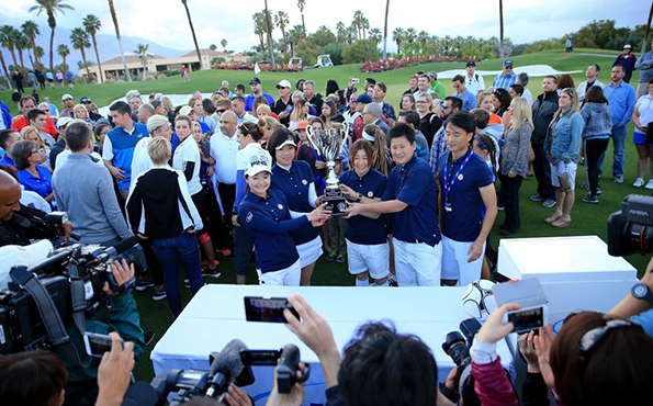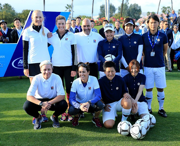 日本队捧得奖杯演。美国队由两位高尔夫球手保拉-克里默、杰西卡-科达和两位美国女足国脚阿比-瓦姆巴赫和茱莉-福迪组成。日本队由高尔夫球手上原彩子、大山志保和日本女足现役国脚海堀亚由美和2011女足世界杯冠军队成员小林弥生组成,最终日本队取得胜利。