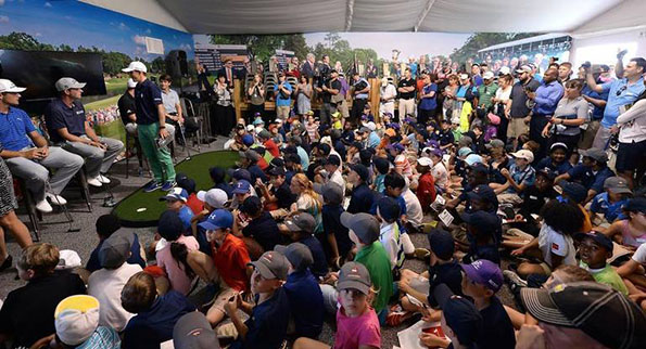 富国银行锦标赛将于5月5日-8日在北卡罗来纳州惊恐山谷俱乐部举行。JB.霍姆斯,卢克-唐纳德等试场练习,布赖森-德尚博与小球迷玩呼啦圈互动。