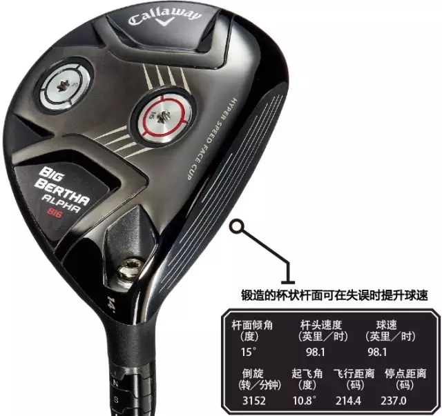 测试产品:杆面倾角15°(可调节至14°到18°)配Big Bertha 70碳素杆身