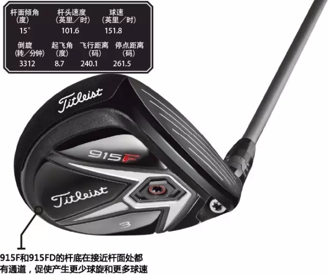 915F和915FD的性能非常强劲——如果厌倦了又远又直的击球,可以让它按照你的指令移动球路,尤其用915FD,从球道内外任何球位的击球都活力十足。可掩饰方向性错误,即使击球经常失误也无妨;915F略更容错,但两款球杆都能增强信心——直攻果岭时不必担心障碍区;击球很容易升空。915FD是扮演第二支开球木杆的极好选择——能满足任何开球需要;球道击球也不含糊。两款球杆都能产生有力、活泼的手感和声音;挥杆全程稳定、平衡且有完美的重感。传统、经典、低调的外观,符合测试者对Titleist木杆的预期。