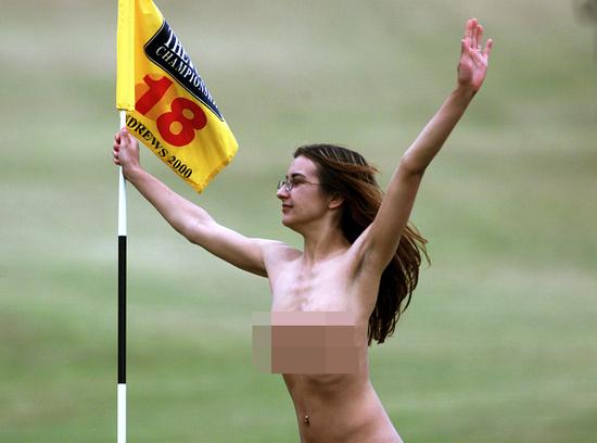 2000年是伍兹职业生涯的巅峰期,同样是在圣安德鲁斯,老虎竟然引发了多达5名裸奔者争相在老虎面前一展风姿,创下了英国公开赛裸奔史上的纪录!其中,尤以杰奎-塞尔蒙德依靠可人身材、优雅仪态,在正确的时间和正确的地点一脱成名,成为了不亚于马克-罗伯茨的裸奔“名人堂”级人物。